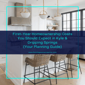 This guide is a simple, realistic look at the first-year homeownership costs you can expect in Kyle and Dripping Springs — whether you already live here or you’re working toward becoming a homeowner in the future.